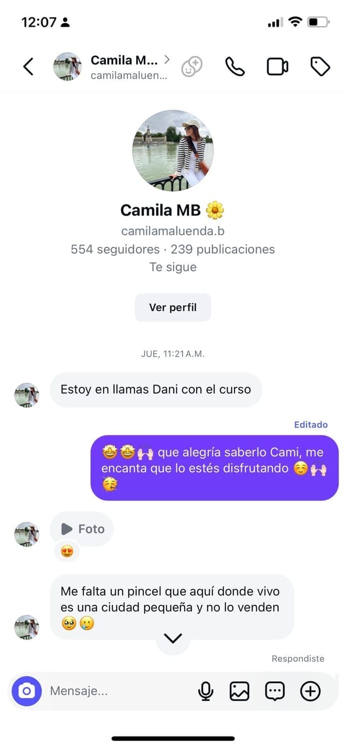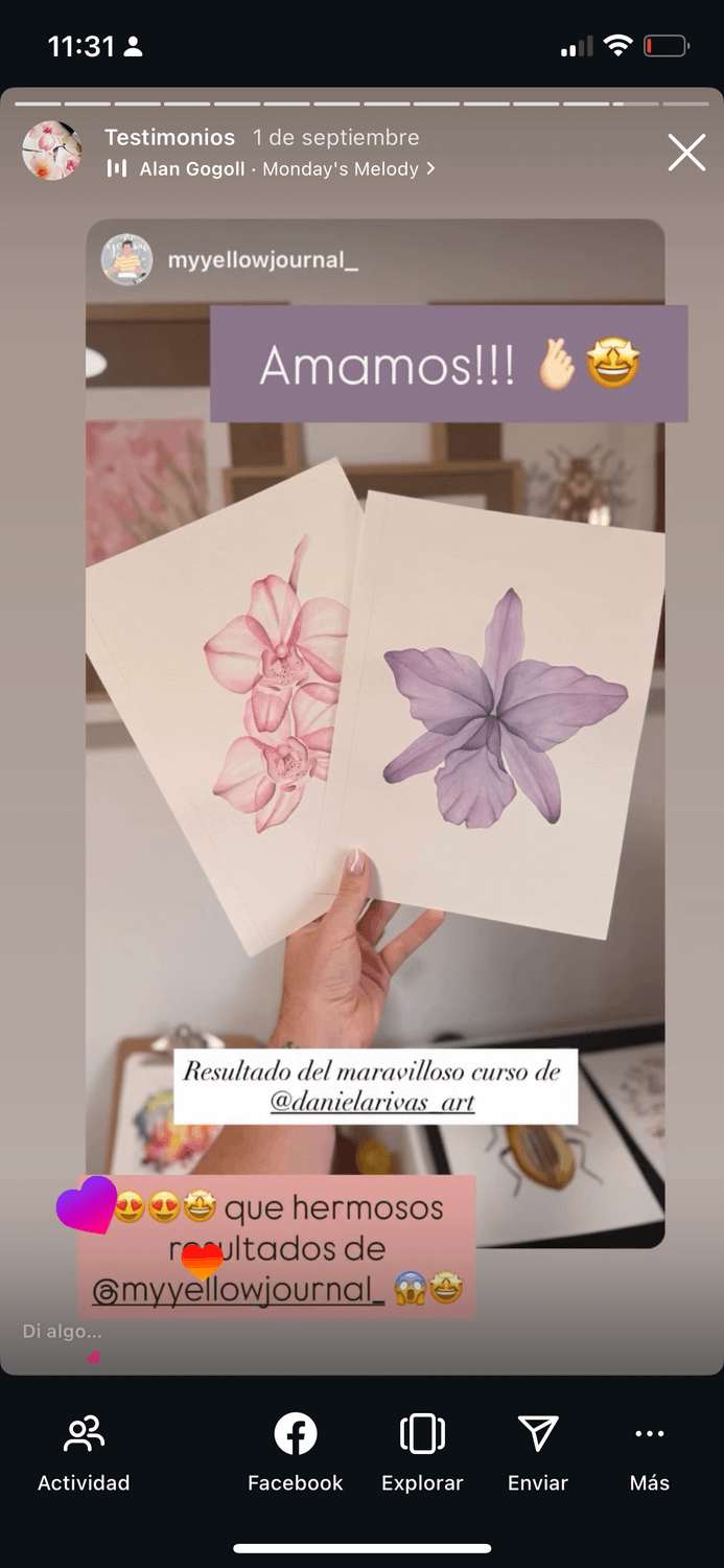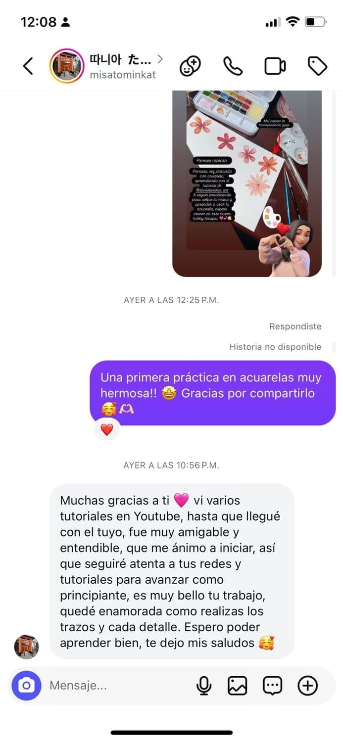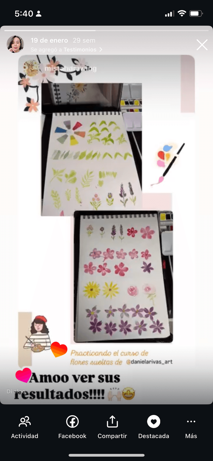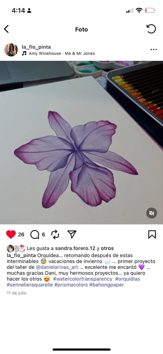 Hoy, después de años perfeccionando este método, más de 100.000 personas siguen mi trabajo en redes sociales. He tenido el privilegio de colaborar con marcas internacionales prestigiosas del mundo del arte y, lo más importante, he visto a cientos de alumnas transformar completamente su relación con la acuarela usando exactamente el mismo proceso que te voy a enseñar.