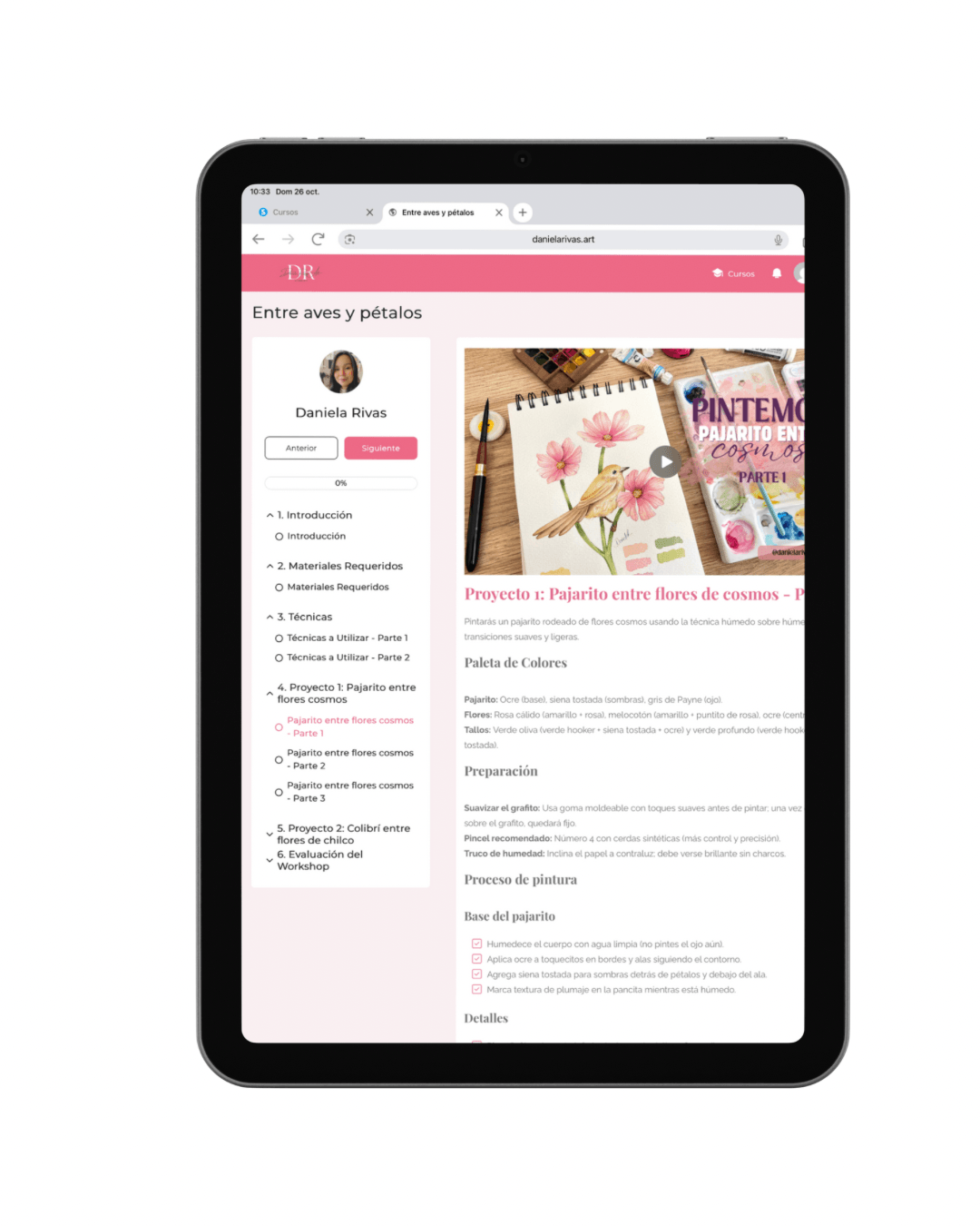 Una vez que completes tu compra, recibirás un acceso inmediato a la plataforma privada, donde podrás ver las lecciones, descargar los materiales y comenzar a pintar de inmediato.