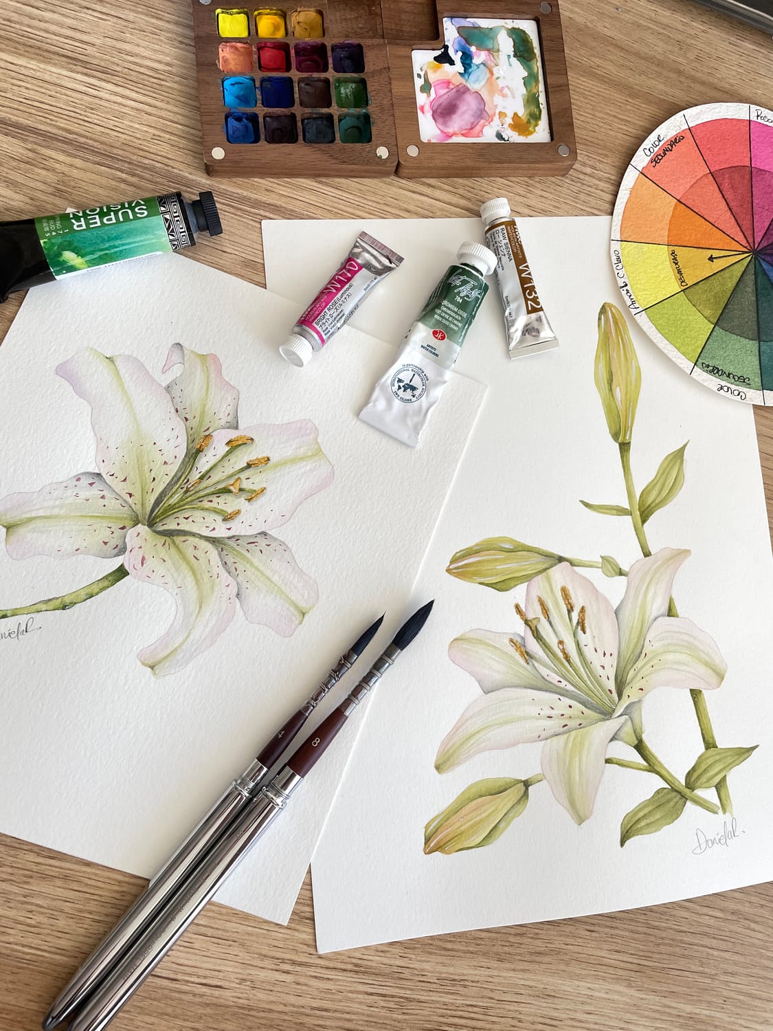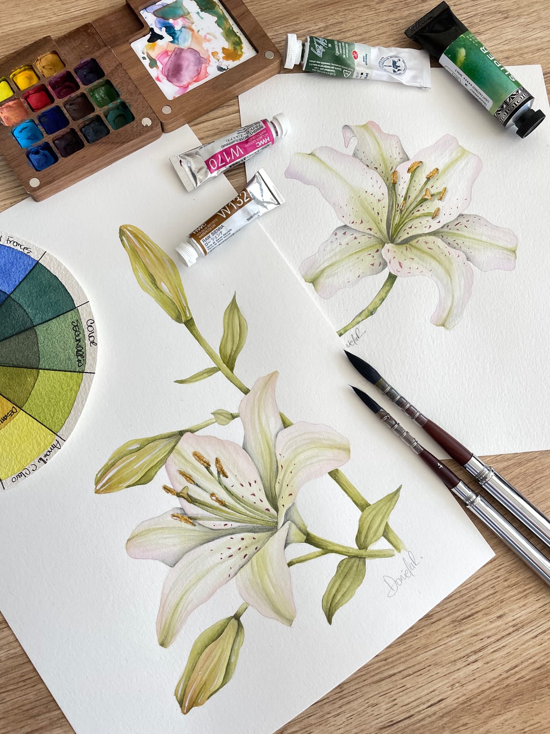Con mi método, que he desarrollado con años de práctica y enseñanza, aprenderás paso a paso cómo pintar un lirio blanco en acuarela, sin frustraciones ni dudas.